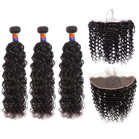 3 Bundles with a 13x4 Frontal Curly Hair 12-32 inch 100% Unprocessed Virgin Hair Extensions