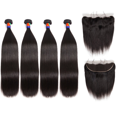 3 Bundles with a 13x4 Frontal Straight Hair 12-38 inch 100% Unprocessed Virgin Hair Extensions