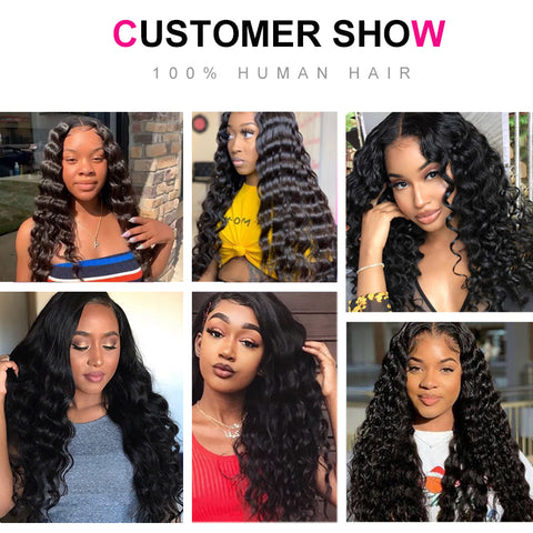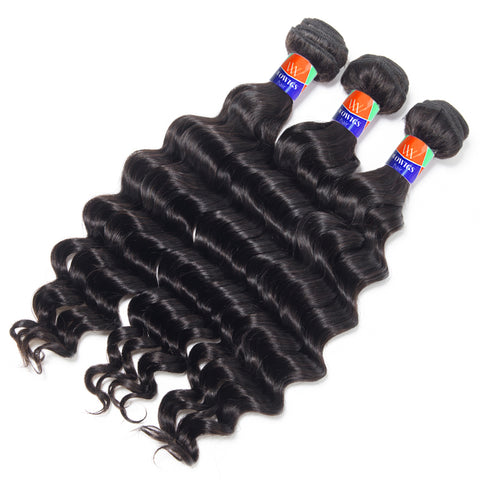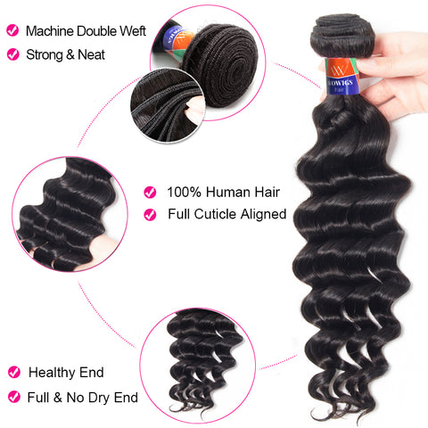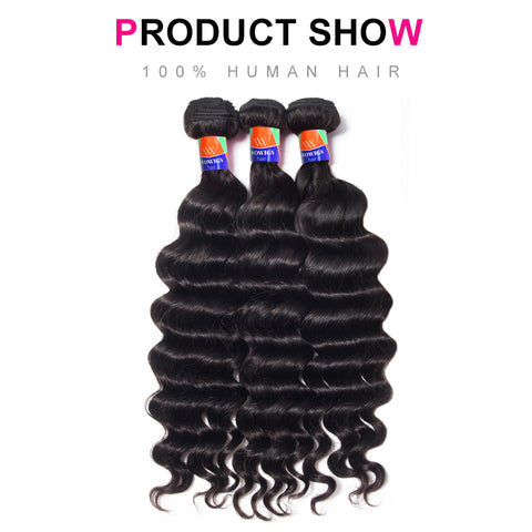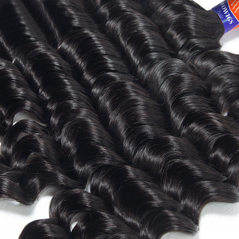 3 Bundles with a 4×4 Lace Closure Deep Wave 12-32 inch Virgin Hair Extensions
