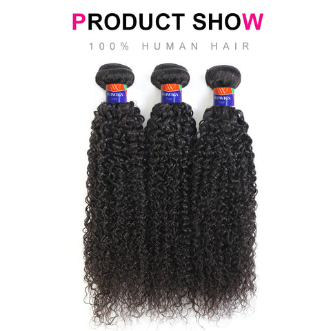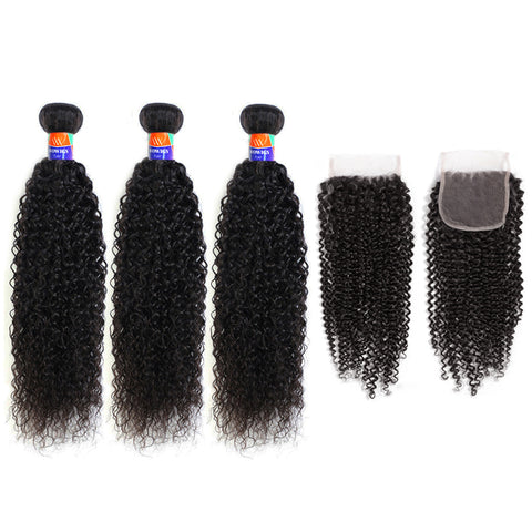 3 Bundles with a 4×4 Lace Closure Kinky Curly 12-30 inch Virgin Hair Extensions