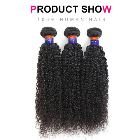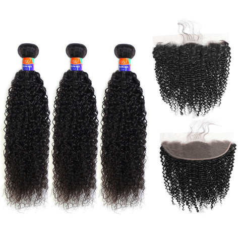 3 Bundles with a 13x4 Frontal Kinky Curly 12-30 inch 100% Unprocessed Virgin Hair Extensions