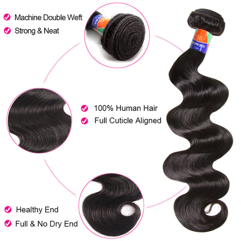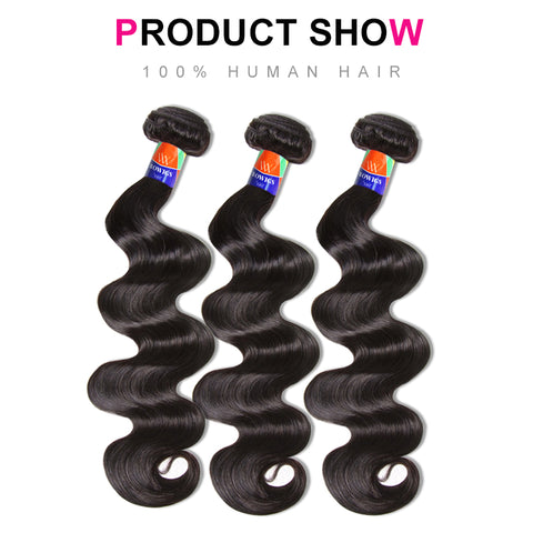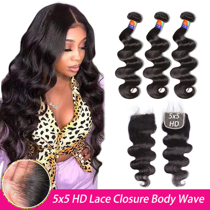 3 Bundles with a 5x5 HD Lace Closure Body Wave 12-38 inch 100% Unprocessed Virgin Hair Extensions