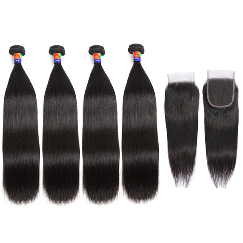 4 Bundles With a 4x4 Lace Closure Straight Hair Virgin Hair Extensions