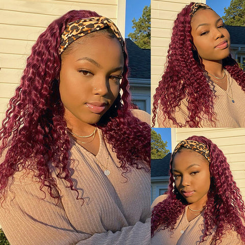 EVAN Burgundy Curly Headband Wig Human Hair Wig
