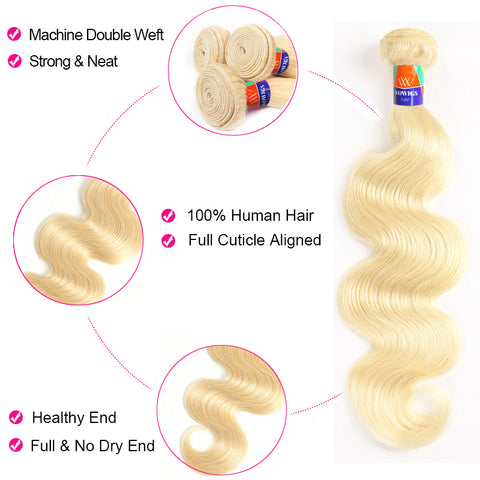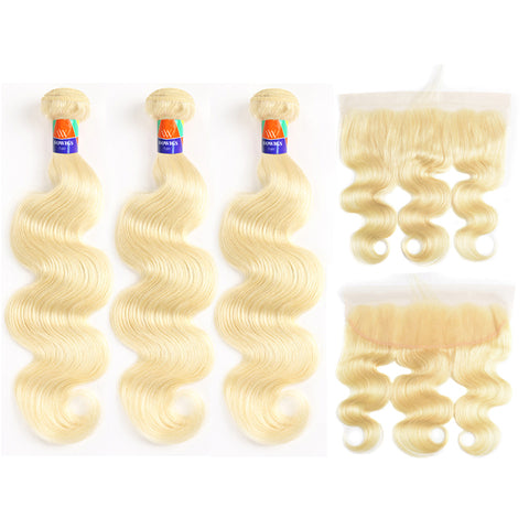 #613 Blonde 3 Bundles with a 13x4 Frontal Body Wave 12-38 inch 100% Human Hair Extensions