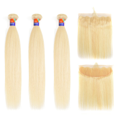 #613 Blonde 3 Bundles with a 13x4 Frontal Deals Straight 12-38 inch 100% Human Hair Extensions