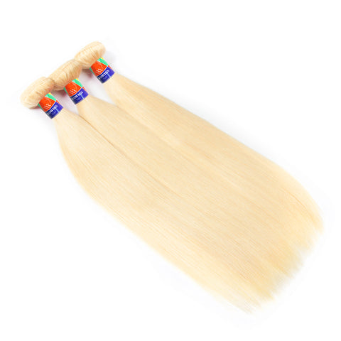 #613 Blonde 3 Bundles with a 4x4 Closure Deals Straight 12-40 inch Human Hair Extensions