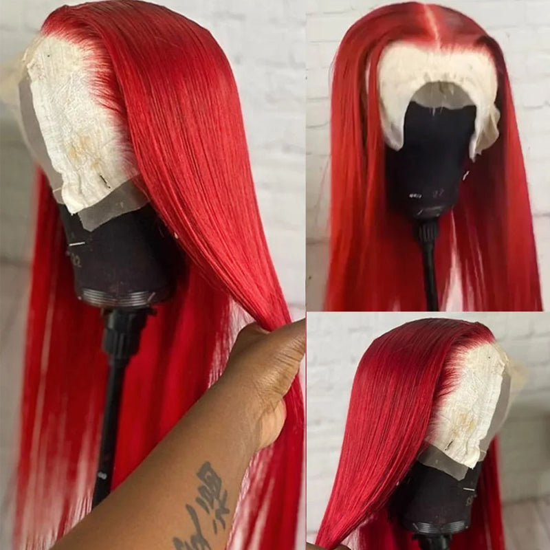 Red Straight Hair Glueless Lace Wig 13x4 Lace Frontal Human Hair Wig